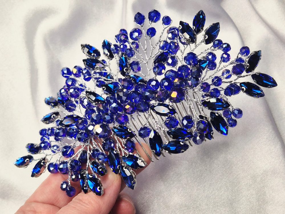 Pente com diferentes contas em azul intenso