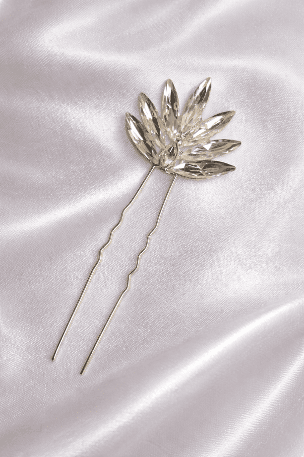 Par de grampos prateados com cristais