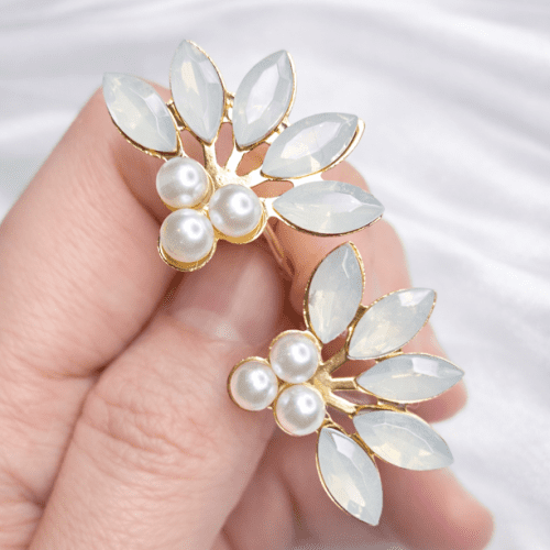 Trio de grampos prateados de pérolas e cristais